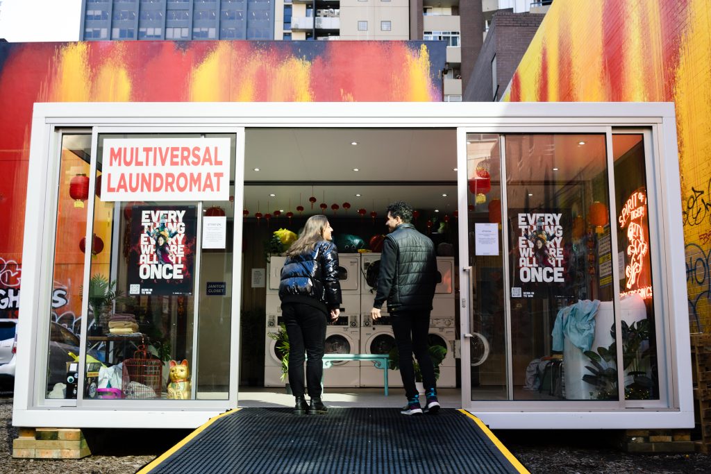The *Everything Everywhere All At Once* multiversal laundromat activation brilliantly brought the film’s chaotic, kaleidoscopic world to life. Guests began in a meticulously recreated laundromat looking for references to the film and hidden snacks, then journeyed through a disorienting mirror room and key film-inspired spaces. The highlight was the washing machines, which spun with hypnotic visuals, acting as portals to other dimensions and immersing attendees in the movie’s themes.
